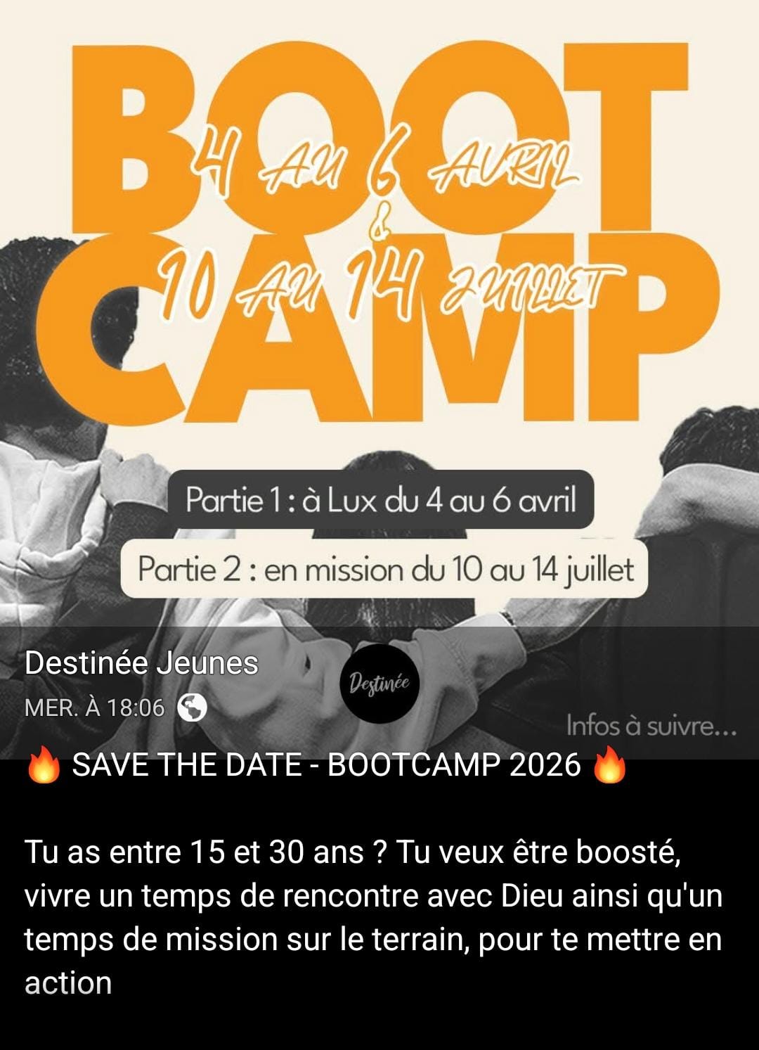 Par l'église destinée, et pour les jeunes : Le bootCamp également